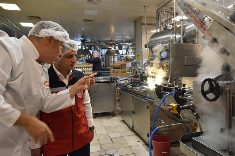Son olarak Seyidoğlu Gıda Sanayi ve Ticaret Anonim Şirketi’nin fabrikasını ziyaret eden Suat Parıldar, üretim alanında çeşitli incelemelerde bulundu. Firmanın üretim kapasitesi ve uyguladığı yöntemler hakkında detaylı bilgi alarak, üretimde karşılaşılan zorluklar ve geliştirilmesi gereken alanlar üzerinde istişarelerde bulundu.