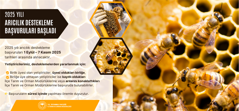 2025 yılı arıcılık destekleme başvuruları 1 Eylül – 7 Kasım 2025 tarihleri arasında alınacaktır.
