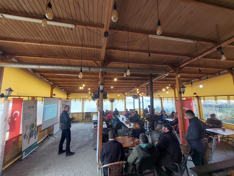 Programın devamında, Tarımsal Kuraklık konusuna değinilerek, iklim değişikliğiyle birlikte artan kuraklık risklerinin tarımsal üretime etkileri değerlendirildi. Trakya Tarımsal Araştırma Enstitüsü’nden Dr. İrfan Öztürk, kuraklığın olası etkilerinin en aza indirilmesi amacıyla alınması gereken önlemler, uygun çeşit seçimi ve ekim zamanları gibi başlıklarda teknik bilgiler içeren sunumunu katılımcılarla paylaştı.