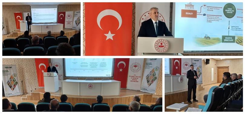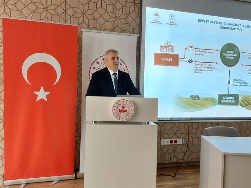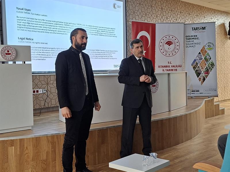 Toplantıda, Devlet Destekli Tarım Sigortaları (TARSİM) uygulamaları kapsamında üretici ve yetiştiricilerimizin sigorta sistemine dair farkındalığının artırılması ve TARSİM’in yaygınlaştırılması hedefiyle; TARSİM Bölge Müdürü Hamit Çönte tarafından kapsamlı bilgilendirme sunumu yapıldı. Sunumda, tarımsal üretimde karşılaşılan riskler, sigorta kapsamları ve devlet destekleri detaylı şekilde ele alındı.